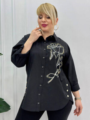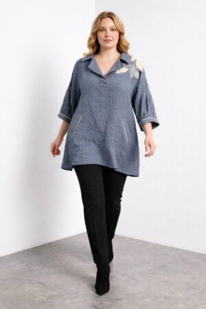 – Sophisticated tunic-style shirt designed for professional and casual-chic wardrobes.