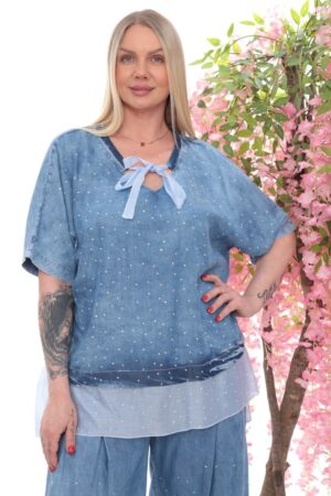 Crystal Studded Denim Two-Piece Palazzo Set