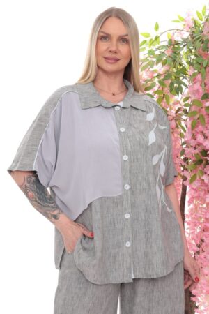 Two-Tone Leaf Embroidered Linen Suit