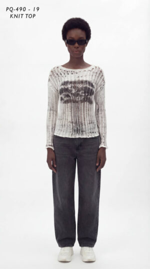 Women’s Distressed Long Sleeve Abstract Knit Top