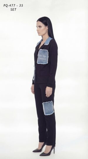 Women’s Distressed Denim Patch Two-Piece Jacket Set
