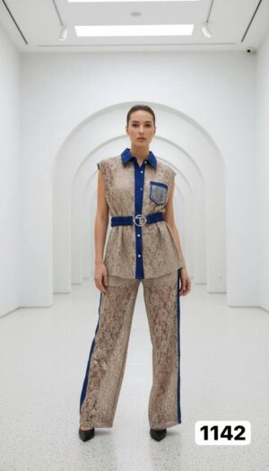 Women’s Denim Patchwork Two-Piece Set Crop Top Joggers