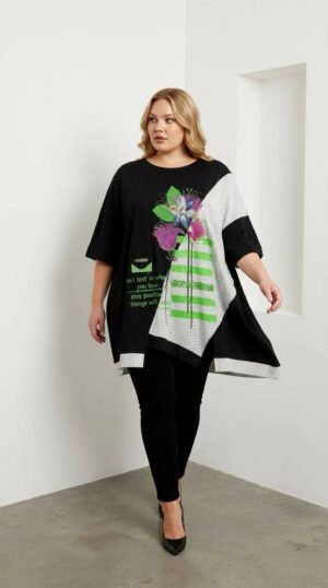 Women’s Abstract Print Mesh Sleeve Tunic Shirt