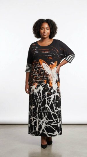 Abstract Calligraphy Print Maxi Dress