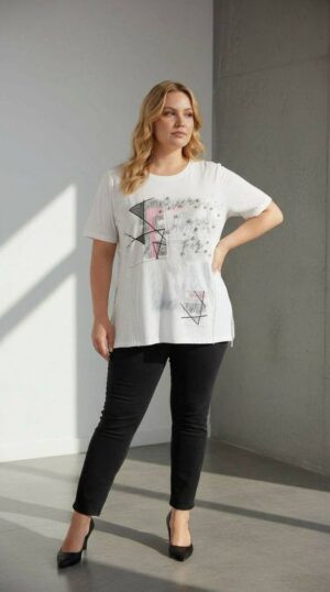 Women’s White Graphic Print Short Sleeve Blouse