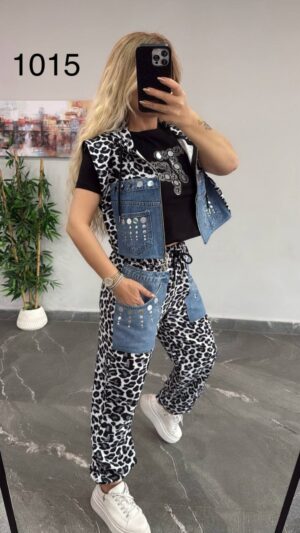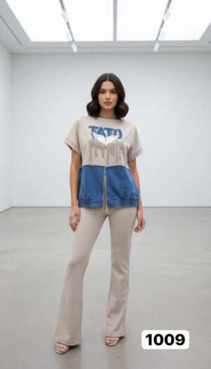 Chic Denim-Patch Graphic Tee and Flare Pants Set