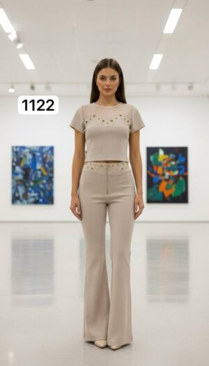 Chic Grommet Detail Two-Piece Set with Flared Pants