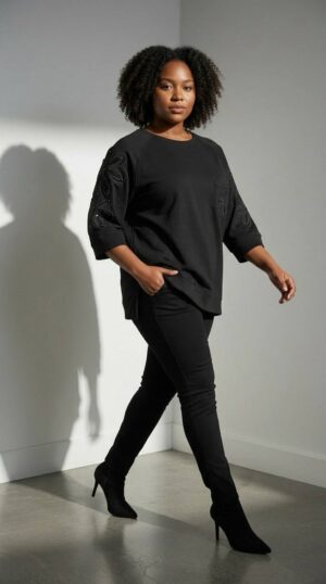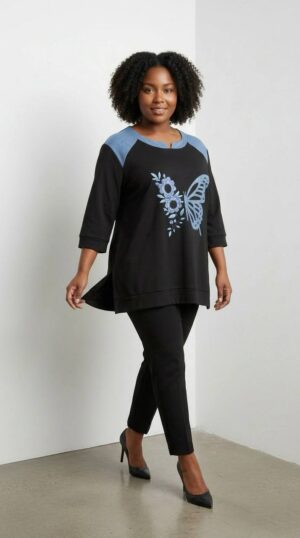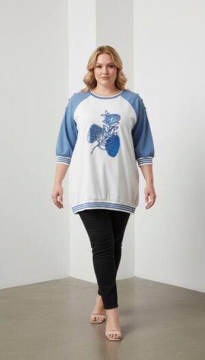 Embellished Asymmetrical Collar Tunic with Floral Appliqué