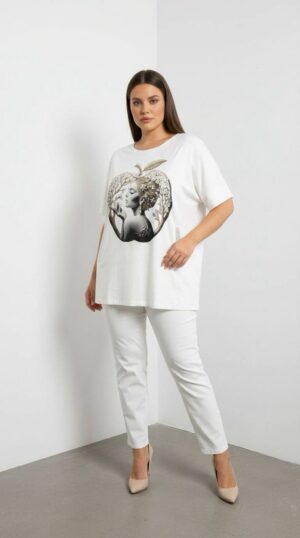 Elegant Elephant Print Oversized White Blouse